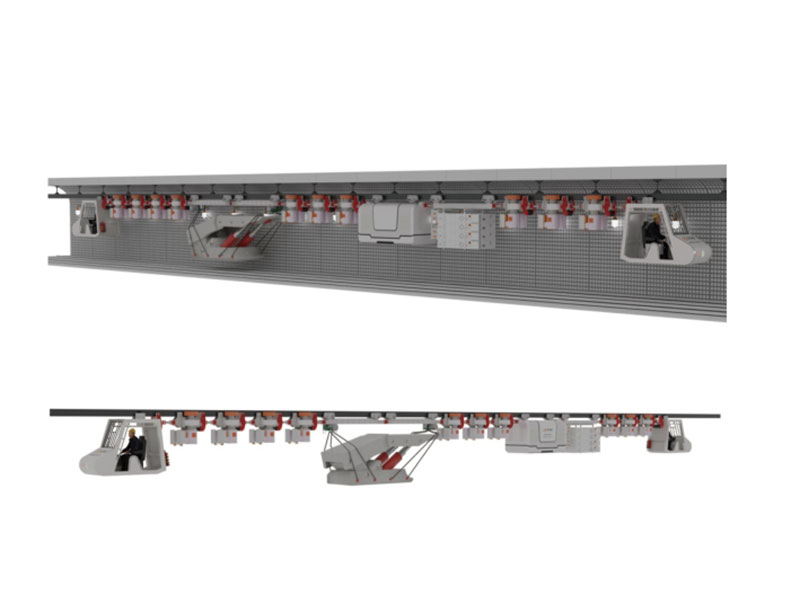DL系列防爆鋰電池單軌吊機車,是一種以鋰電池為動力源,電力、油泵驅動電機繼而帶動機車運行的煤礦井下輔助運輸設備。其運行軌道采用德國工業標準的1140E型或I140V型工字型鋼,由鏈條柔性地固定于巷道頂部,機車運行承載輪卡入工字鋼兩側,無脫軌、掉道現象,制動停車是靠制動器彈簧夾緊軌道腹板實現,動作方式為失效制動,運行安全、便捷更高 效。