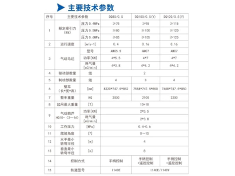 • DQ80/0.5、DQ100/0.5(Y)、DQ120/0.5(Y)型氣動單軌吊車